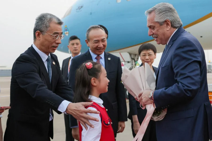El mandatario partió a China acompañado por el secretario general de la Presidencia, Julio Vitobello; el titular del Banco Central de la República Argentina, Miguel Pesce, y la secretaria de Relaciones Económicas Internacionales de la Cancillería, Cecilia Todesca Bocco.