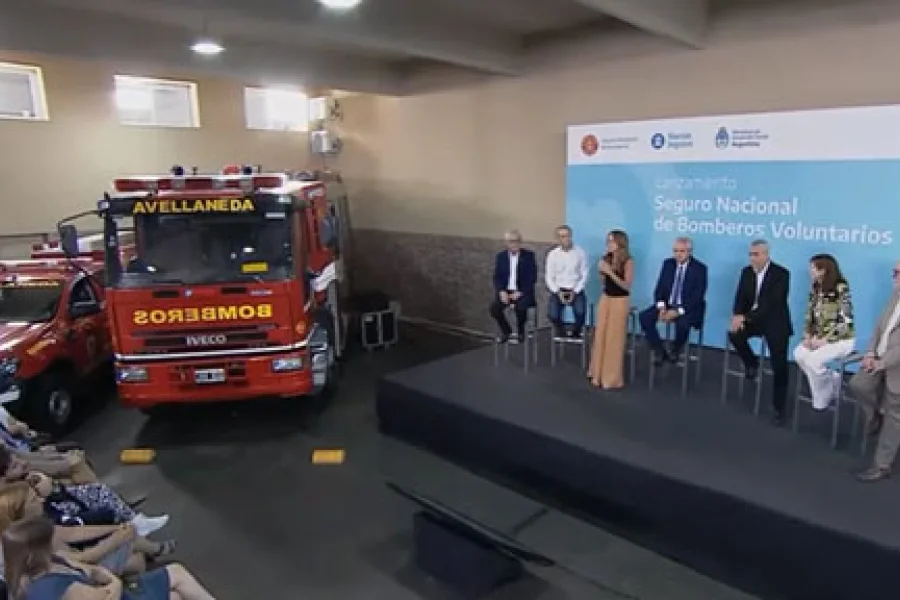 El presidente Alberto Fernández encabezó el acto de lanzamiento del Seguro Nacional de Bomberos Voluntarios en la localidad de Avellaneda, al sur del Conurbano.