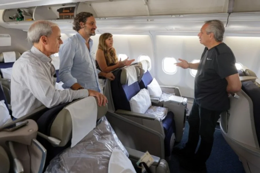 El mandatario voló con rumbo a la ciudad de Nueva Delhi acompañado por el canciller, Santiago Cafiero; el secretario general de la Presidencia, Julio Vitobello; la portavoz presidencial, Gabriela Cerruti; y el embajador argentino en Estados Unidos y sherpa argentino, Jorge Argüello.