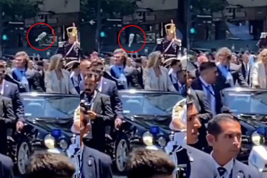 Un hombre, identificado como Gastón M, arrojó una botella cuando el presidente Javier Milei se trasladaba desde el Congreso hasta la Casa Rosada por la Avenida de Mayo. El hecho ocurrió cuando, tras el acto de traspaso de mando y la jura en el Congreso, el flamante jefe de Estado se trasladaba en un auto descapotable por Avenida de Mayo y, a la altura de la calle Montevideo, uno de los custodios, el subcomisario de la Policía Federal Argentina (PFA) Guillermo Armentano, recibió el impacto de una botella que había sido arrojada desde la vereda.
