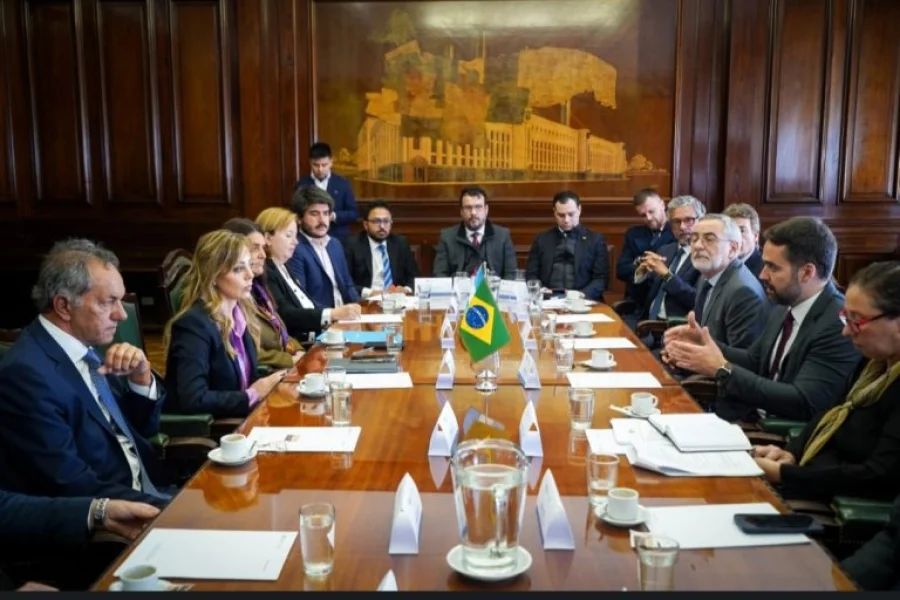 La secretaria de Energía, Flavia Royón, y el Gobernador de Río Grande do Sul Eduardo Leite, junto a los embajadores Daniel Scioli y Julio Bitelli, mantuvieron un encuentro para analizar las oportunidades de integración energética a partir de la reciente finalización del primer tramo del Gasoducto Presidente Néstor Kirchner (GPNK).