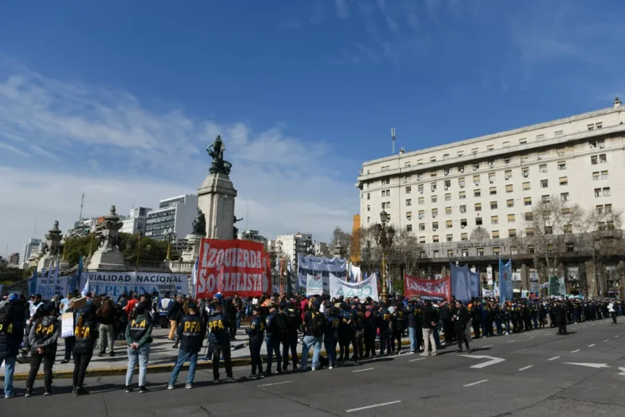 La Policía Federal hizo retroceder a los manifestantes, en cumplimiento del protocolo antipiquetes, mientras los efectivos de la Policía de la Ciudad se apostaron fuera del anillo de la Plaza Congreso.
