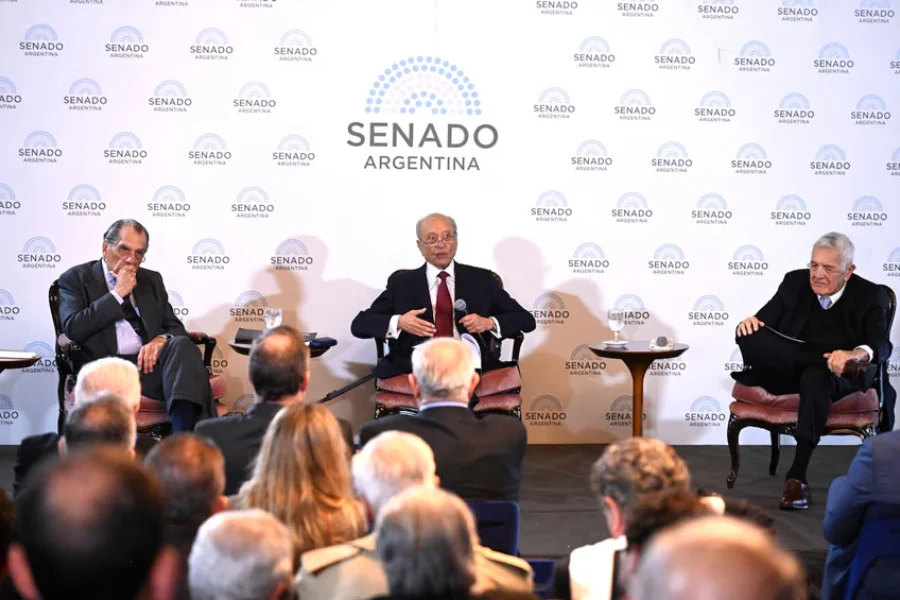 El exlegislador y padre del actual presidente de la Cámara de Diputados Martín Menem realizó esta presentación en el Salon Azul del Senado nacional acompañado por Rodolfo Díaz y Jorge Castro.