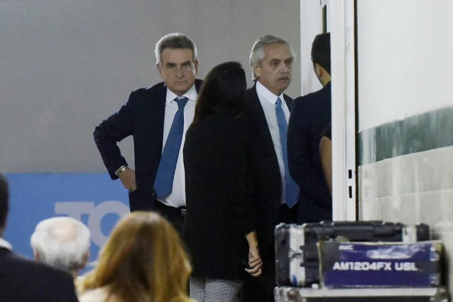 El presidente Fernández ingresó a las 19.45 acompañado por el jefe de Gabinete, Agustín Rossi; el canciller Santiago Cafiero; y la ministra de Desarrollo Social, Victoria Tolosa Paz.