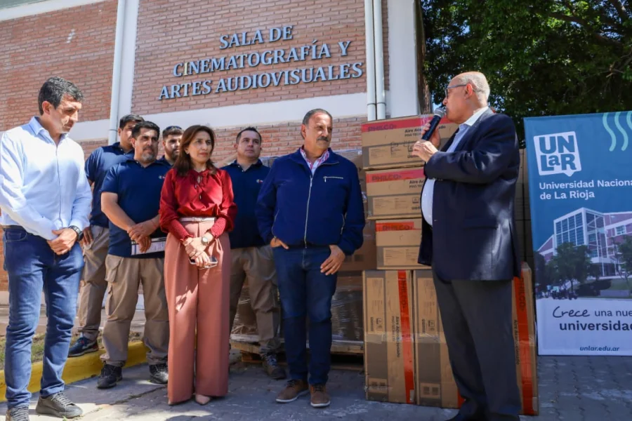 "Hicimos entrega a la comunidad de la UNLaR de los primeros aires acondicionados que buscan restablecer el sistema de refrigeración de la universidad, tal y como nos habíamos comprometido en la reunión que mantuvimos días atrás", destacó el mandatario provincial, quien agregó que los equipos "serán instalados en aulas, anfiteatros y salas a donde se dicten clases de diferentes carreras".