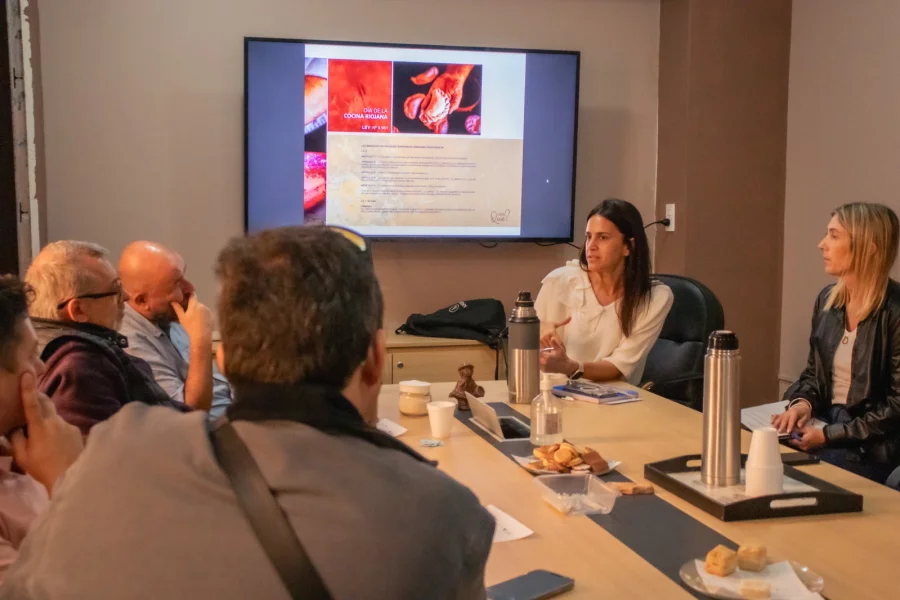 El encuentro se concretó en el marco de la planificación, desarrollo, mejora y puesta en valor de la gastronomía riojana y la prestación de servicios gastronómicos en toda la provincia con el objetivo de fortalecer este sector que se vincula directamente con las vivencias de las y los turistas que arriban a suelo riojano.