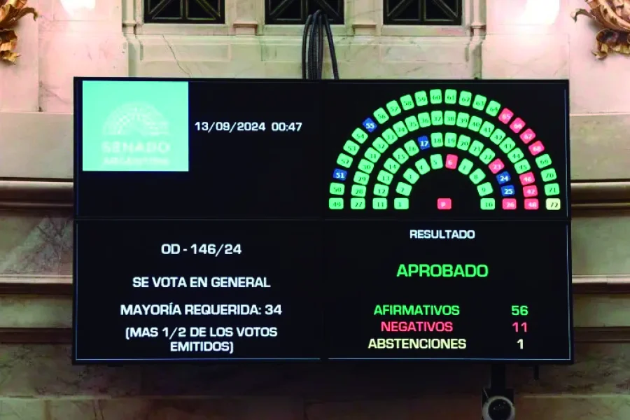 Los votos en contra correspondieron a los legisladores de La Libertad Avanza, más los senadores del Pro Carmen Alvarez Rivero, Alfredo De Angeli y Enrique Göerling Lara, más el formoseño Francisco Paoltroni. Se abstuvo María Victoria Huala y estuvieron ausentes Lucía Corpacci, Silvina García Larraburu, Gerardo Montenegro y Rodolfo Suárez. Desde el bloque Cambio Federal anunciaron disidencia en algunos puntos del texto y propusieron la votación en particular de los 9 artículos del proyecto en revisión. Sin embargo, todos fueron ratificados con dos tercios de los votos.
