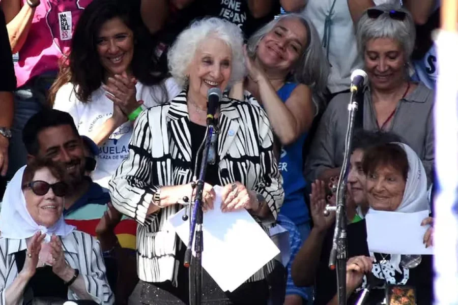 Y preguntó: “¿Dónde están los nietos y nietas que buscamos las abuelas, que buscan sus hermanos, hermanas, sus familiares? ¿Dónde están frente a ese gobierno que pretende restablecer la teoría de los dos demonios y reivindica el terrorismo de Estado?”.
