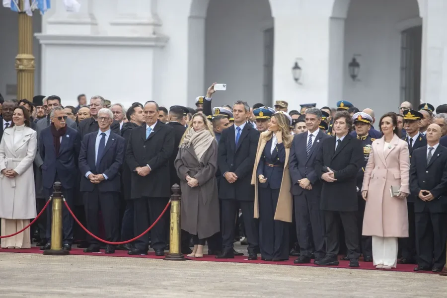 El jefe de Estado estuvo flanqueado por Jorge Macri y Villarruel, con quienes no cruzó miradas ni palabra alguna.