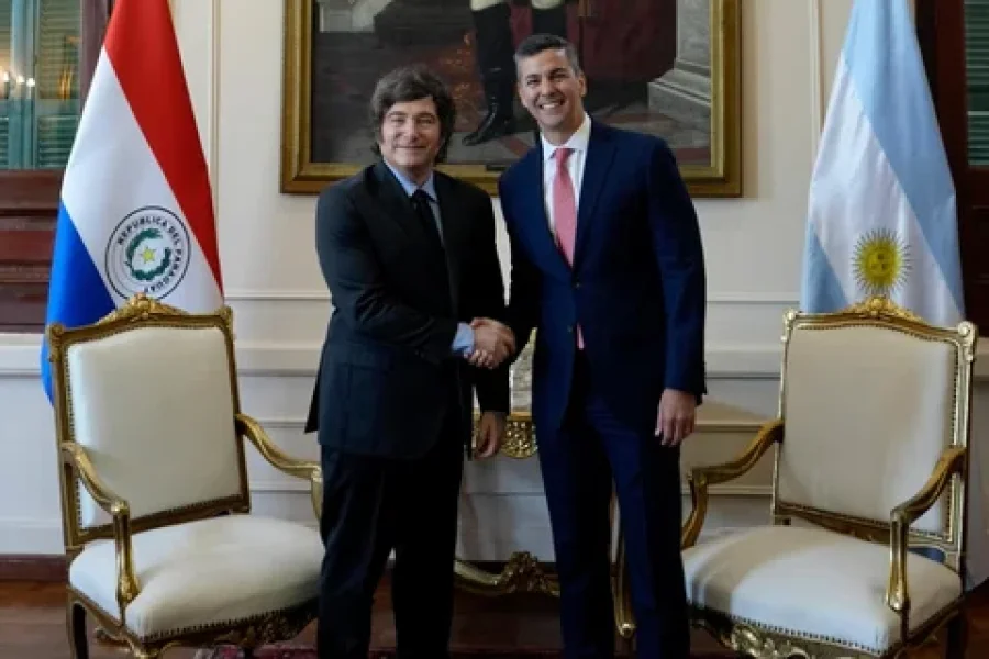 El presidente Javier Milei mantuvo este mediodía una reunión bilateral con su par de Paraguay, Santiago Peña, en el Palacio de López, la casa de Gobierno ubicada en la capital, Asunción.