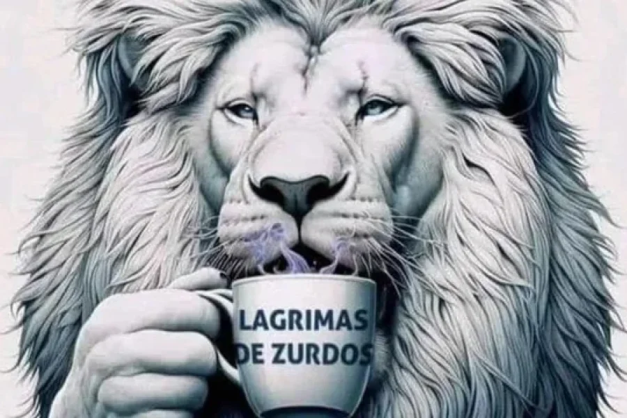 Además, el presidente ilustró su comentario con la foto de un león, sosteniendo una taza con la leyenda: "Lágrimas de zurdos".