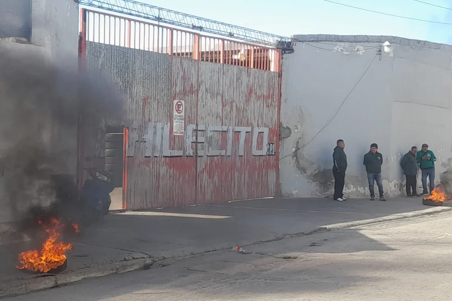 Miembros del sindicato se reunieron en el ingreso de la empresa, donde se hicieron sentir con cánticos y la quema de cubiertas, simbolizando su rechazo a las intimidaciones.