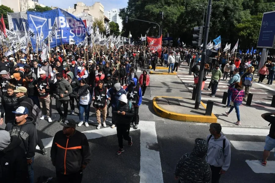 La Unión Trabajadores de la Economía Popular (UTEP) y las organizaciones piqueteras realizaban, desde las 11, una “jornada nacional de lucha” contra el Gobierno de Javier Milei. La concentración principal en la Ciudad de Buenos Aires es en la intersección de la Avenida 9 de Julio y Moreno, frente al histórico edificio dónde funciona la Secretaría de Niñez, Adolescencia y Familia, la ex cartera de Desarrollo Social, donde la Policía de la Ciudad desalojó un corte total de los manifestantes.