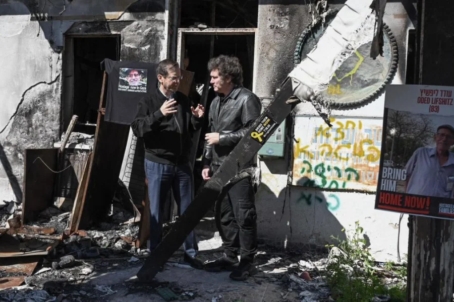 En ese poblado Milei y Herzog escucharon a las víctimas del ataque, muchas de las cuales son argentinas-israelíes, y les brindaron su apoyo.