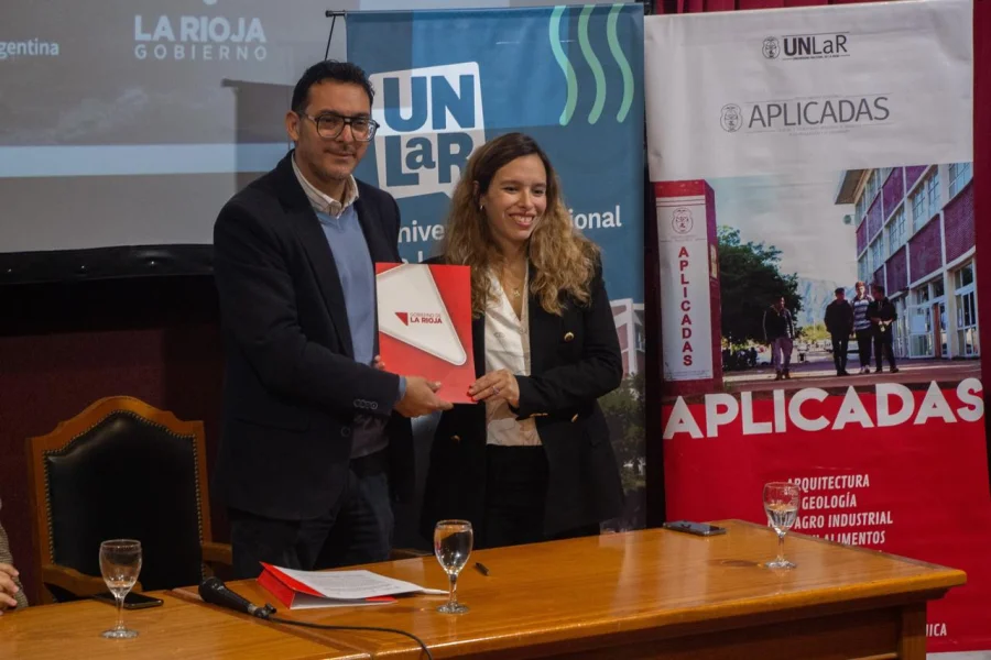 Durante la Jornada Conmemorativa del Día de la Minería Argentina, realizada en la Sala Roja del microcine de la Universidad Nacional de la Rioja, la secretaria de Minería, María Ivanna Guardia, y el decano del Departamento de Ciencias y Tecnologías Aplicadas a la Producción, al Ambiente y al Urbanismo (DACyTAPAU), Ing. Esp. Luis Oscar Oviedo, llevaron a cabo la firma de un acta compromiso para la firma de un Convenio Marco y específico de Cooperación Institucional entre la Secretaría de Minería y el DACyTAPAU de la UNLaR.