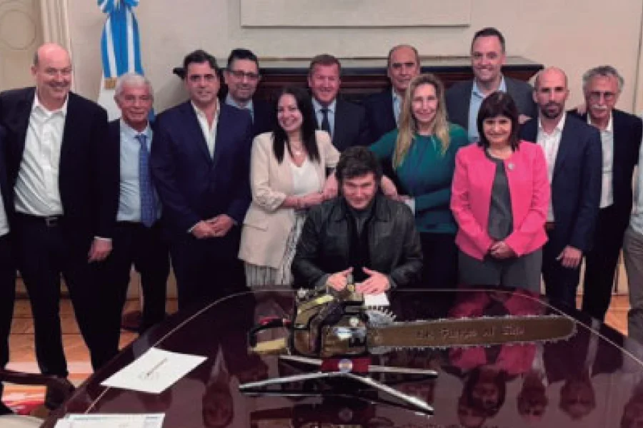 También dan el presente los secretarios general de la Presidencia, Karina Milei; de Legal y Técnica, Javier Herrera Bravo; de Prensa, Eduardo Serenellini; y los vicejefes de Gabinete, José Rolandi, y de Gabinete del Interior, Lisandro Catalán. Completaron la lista el vocero presidencial, Manuel Adorni; el asesor presidencial, Santiago Caputo; y el jefe de Gabinete, Guillermo Francos, el último en llegar. Sorprendió la foto que publicó el mandatario al término de la reunión, donde se lo ve sentado en la mesa, con una motosierra, símbolo característico de su campaña, rodeado de sus principales colaboradores. “El mejor Gobierno de la historia. Viva la libertad, carajo”, resumió.