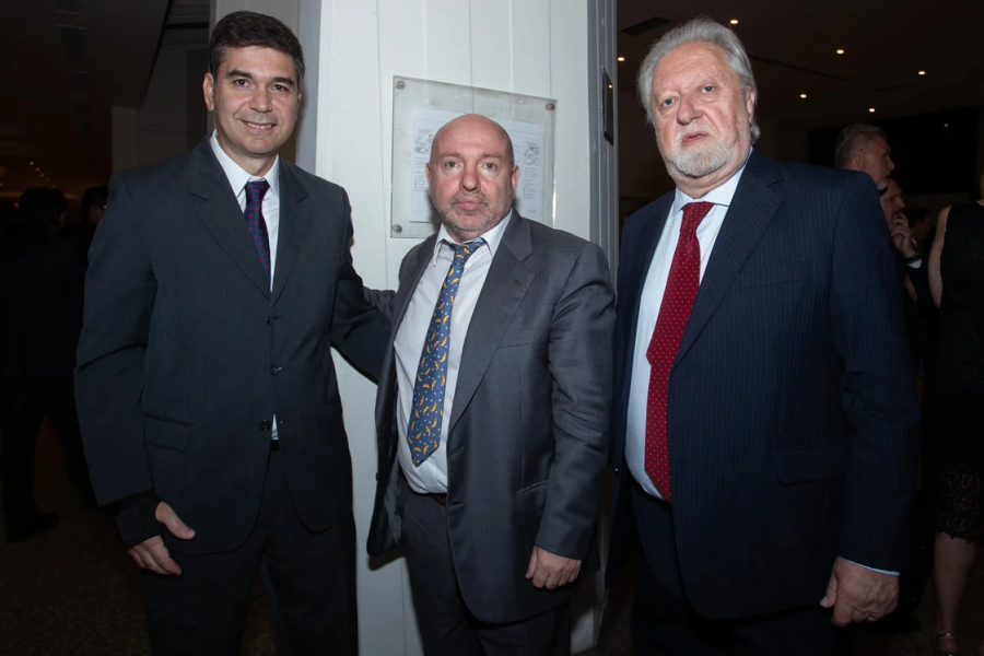 Juan Boglione Presidente de Editorial Famatina, Héctor de la Fuente Periodista científico y Daniel Dessein