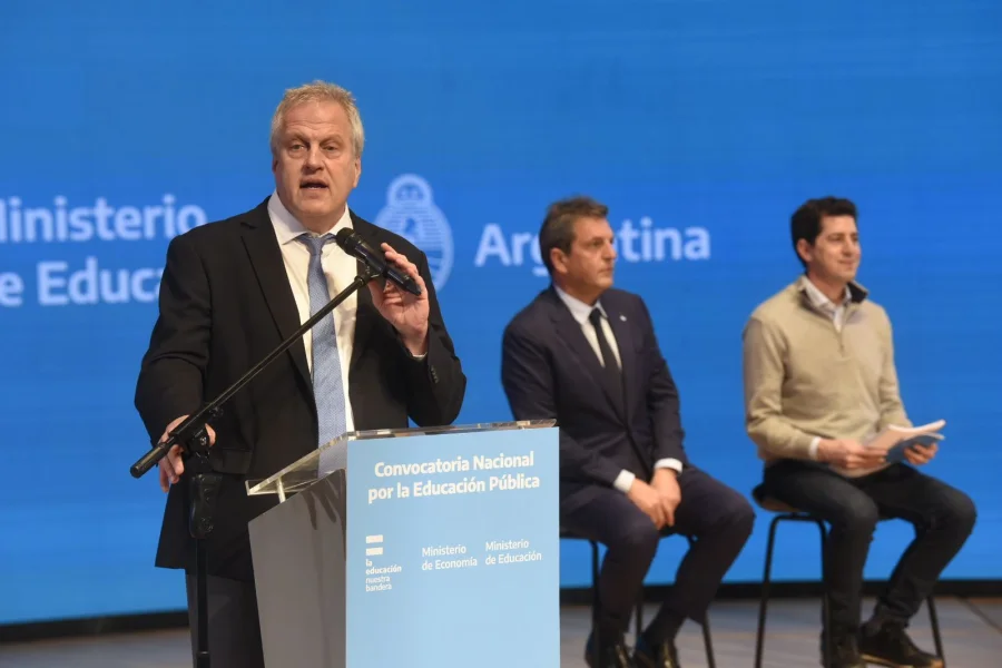 “Creemos que la mejor inversión que puede hacer una sociedad es aumentar la inversión en el sistema educativo”, sostuvo Massa durante el acto que se realizó en el CCK y en el que estuvieron presentes el ministro del Interior, Eduardo “Wado” De Pedro, gobernadores y vices, rectoras y rectores de universidades, legisladores nacionales, ministras y ministros provinciales y representantes de gremios docentes y nodocentes, entre otros.