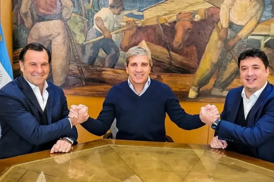 "Enorme agradecimiento a estos dos gigantes profesionales y personas, Marcos Ayerra y @emarzoratiok! Los vamos a extrañar!!", escribió el ministro Luis Caputo en las redes sociales, donde además posó junto a una foto con los salientes funcionarios.