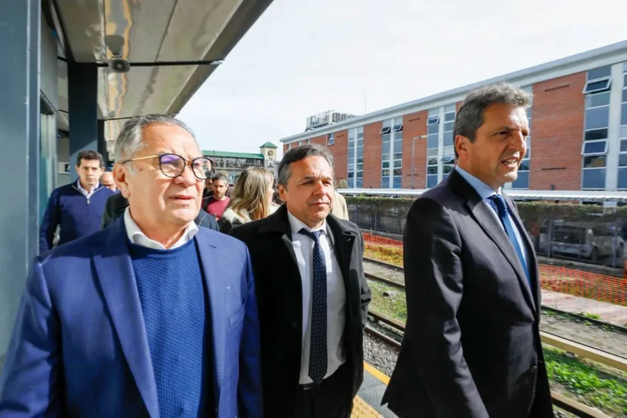 Antes del encuentro con industriales, desarrolladores y comerciantes, Massa y el ministro de Transporte, Diego Giuliano, habían recorrido junto a Descalzo el avance de obra en la estación del distrito de la Línea Sarmiento.