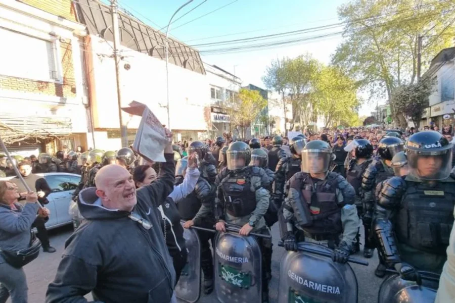 Al igual que ocurrió en otros puntos del país, durante la tarde de este martes se registran protestas contra la recorrida de Milei para apuntalar la campaña proselitista de los candidatos a diputados nacionales Diego Santilli y Karen Reinhardt, entre otros.