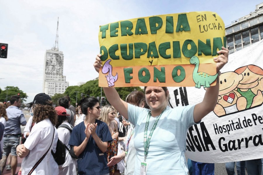 La manifestación se realizaba sobre 9 de Julio, entre Moreno y la avenida Belgrano, y entre las demandas figuraban se incluían también pedidos de "aumento de salarios" y "mantenimiento económico del sistema de salud".