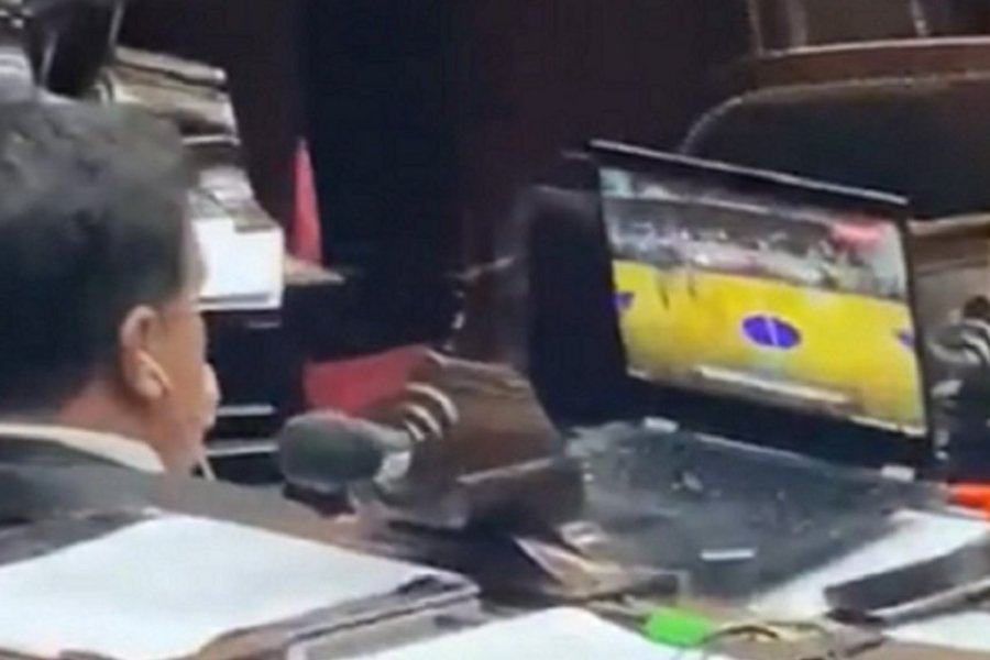 El diputado del Frente de Todos no disimuló ni un poco. Apoyó su notebook en la banca y vio el encuentro a pantalla completa, según se puede observar en un video que se viralizó en las redes.