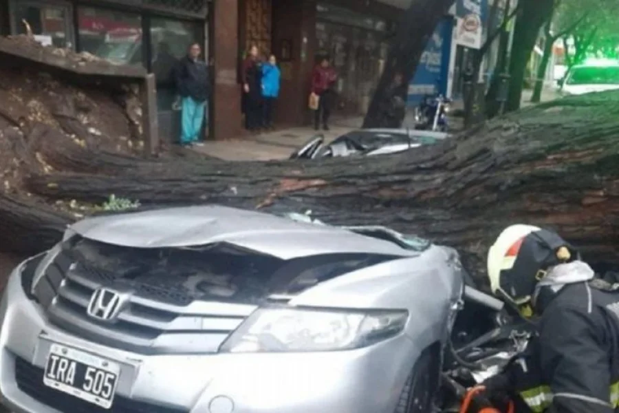 El viento y la fuerte tormenta que azotó este jueves a la Ciudad de Buenos Aires provocó que un árbol de 20 metros se cayera y destruyera a un auto que estaba estacionado en el barrio porteño de Chacarita.