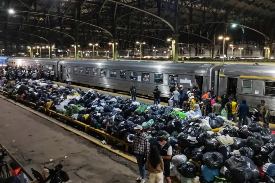 La formación que transporta alimentos, ropa, calzado y otros insumos esenciales, realizó paradas en distintas localidades bonaerense donde también se fueron cargando las donaciones para los damnificados de Bahía Blanca y de otras localidades como Carhue, Guamini y Coronel Suárez, las que también sufrieron inconvenientes por el temporal.