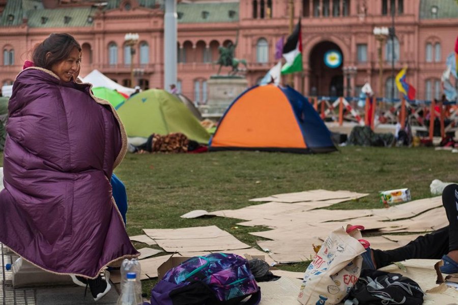 Integrantes de la agrupación Tupac Amaru continuaban este jueves acampando en la Plaza de Mayo en reclamo de la libertad y de un indulto para la dirigente social Milagro Sala, cuya condena en la causa conocida con el nombre "Pibes Villeros" fue ratificada la semana pasada por la Corte Suprema de Justicia.