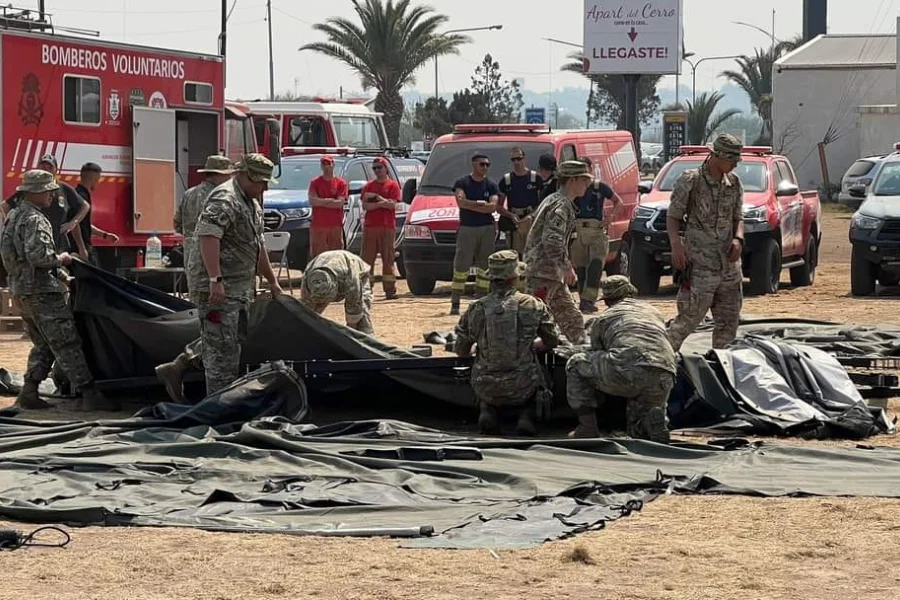 Según informaron, se trata de la Compañía Ingenieros Paracaidista 4 de la IVta Brigada Aerotransportada, que está “desplegando una base adelantada en apoyo a los brigadistas en la lucha contra los incendios, para brindar alojamiento, comida, agua potable y suministro eléctrico”.