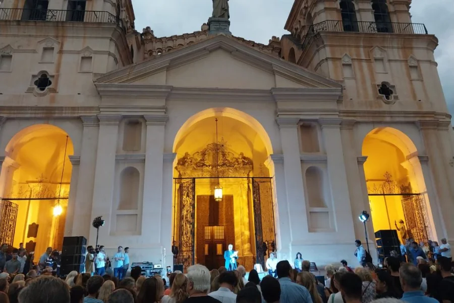 La movilización reunió a un grupo numeroso de personas. Se realizó en la explanada de la casa mayor de la Iglesia, la Catedral de Córdoba.