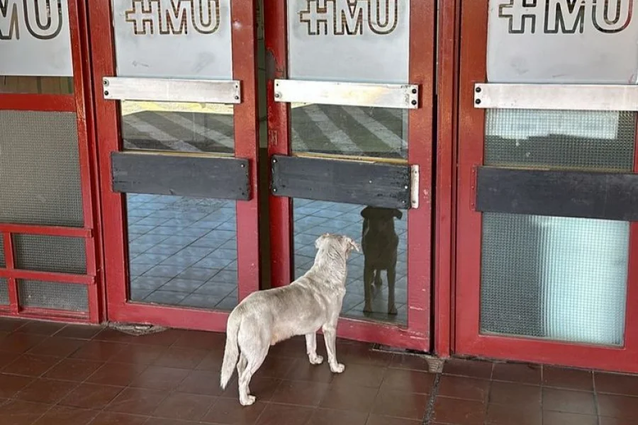 Un perrito permanecía en la puerta del nosocomio esperando a su dueño, quien falleció en el shock room en las primeras horas de la jornada.