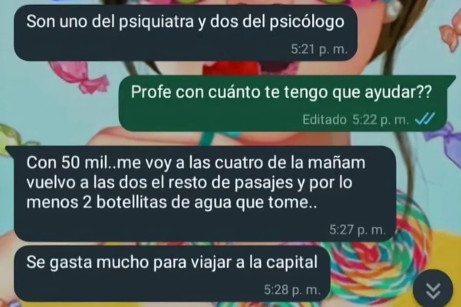 Una docente de Chilecito utilizó su cuenta de Facebook para denunciar que una colega titular le exigió dinero a una suplente para renovar su licencia psiquiátrica. Según la denuncia, la titular pidió $50.000 para cubrir costos relacionados con su tratamiento médico, lo que incluye consultas con psicólogos y psiquiatras, pasajes y otros gastos.