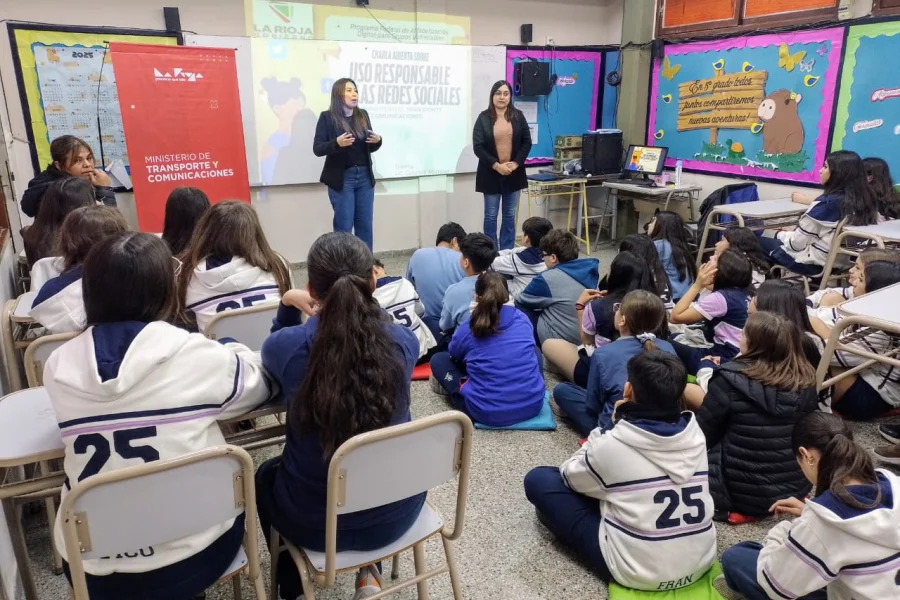 En el marco de las políticas públicas impulsadas por el Gobierno de La Rioja, a través del Ministerio de Transporte y Comunicaciones, se llevó a cabo una charla educativa en la Escuela Privada Gabriela Mistral (Jornada Simple), destinada a estudiantes de 7º grado, docentes y autoridades escolares. La actividad se enmarca en el eje estratégico de conectividad, inclusión y alfabetización digital, con el objetivo de fomentar el uso responsable y consciente de las tecnologías digitales entre niños, niñas y adolescentes.