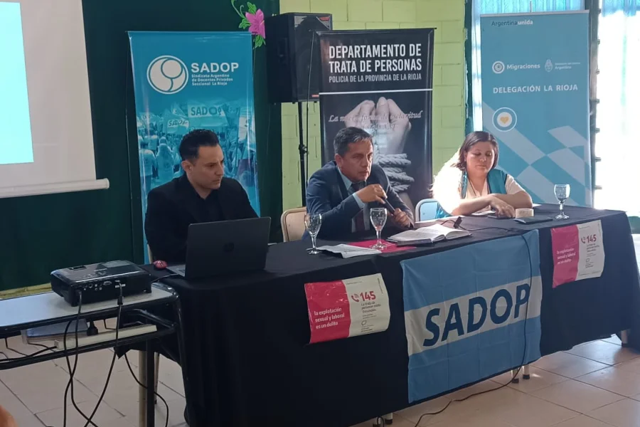 Las modalidades y protocolos de actuación- articulación interinstitucional y difusión de la línea 145, ambos eventos se llevaron a cabo en la ciudad de Aimogasta departamento Arauco. También participaron de las jornadas profesionales de Fiscalía Federal delegación La Rioja, personal de Dirección Nacional de Migraciones, INADI y Comité Ejecutivo de Lucha Contra la Trata de Personas, destinada a los equipos interdisciplinarios, personal municipal, agentes sociales y Docentes agremiados de SADOP de la zona. Es importante destacar que las acciones de prevención que personal del departamento Trata de Personas de la Policía de la provincia, viene realizando es a los efectos de concientización y sensibilizar en marco de las actividades dispuesta por la Dirección General de Narcotráfico Trata de Personas e investigaciones complejas, en conmemoración al día El Día Internacional contra la Explotación Sexual y la Trata de Personas, con el objetivo de poder llegar a toda la sociedad en general