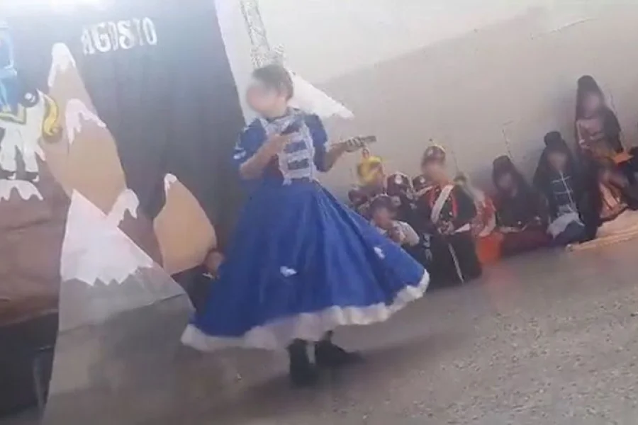El momento quedó registrado en video por los padres de una alumna que recitaba sus líneas mientras la marcha de San Lorenzo sonaba de fondo.