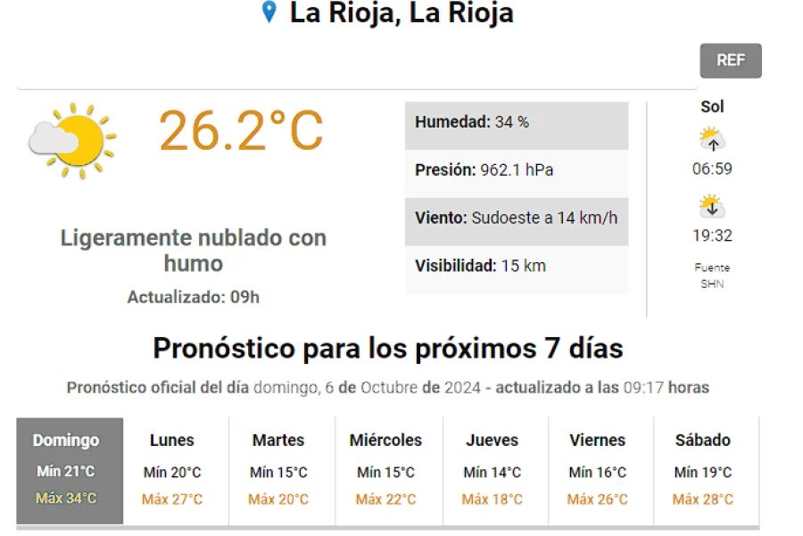Agrandar imagen Enviar Imprimir Domingo cálido con cielo ligeramente nublado Unirme al canal de Whatsapp de "Nueva Rioja"