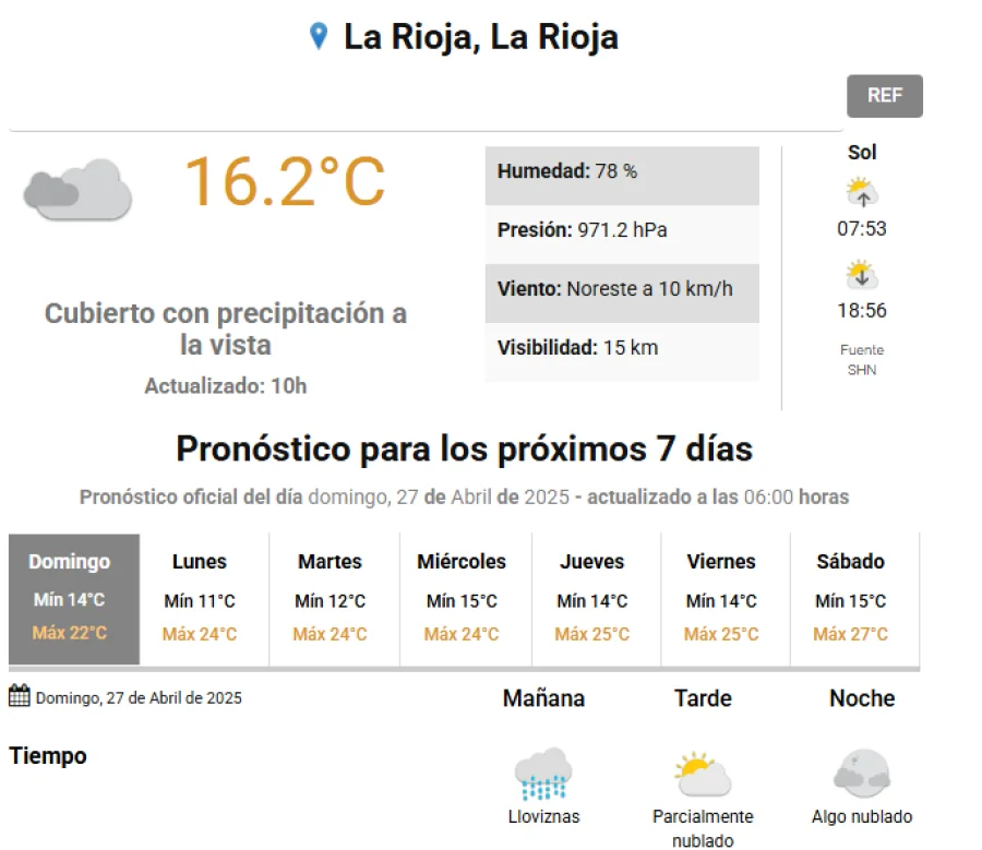Agrandar imagen Enviar Imprimir Domingo con cielo cubierto Unirme al canal de Whatsapp de "Nueva Rioja"