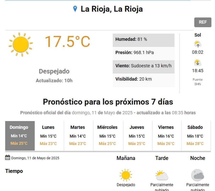 Agrandar imagen Enviar Imprimir Domingo con cielo despejado en Capital Unirme al canal de Whatsapp de "Nueva Rioja"