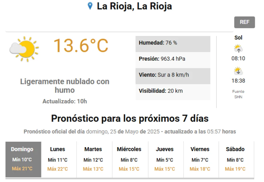Agrandar imagen Enviar Imprimir Domingo con cielo parcialmente nublado Unirme al canal de Whatsapp de "Nueva Rioja"