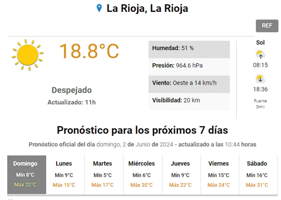 Agrandar imagen Enviar Imprimir Domingo con temperaturas agradables Unirme al canal de Whatsapp de "Nueva Rioja"