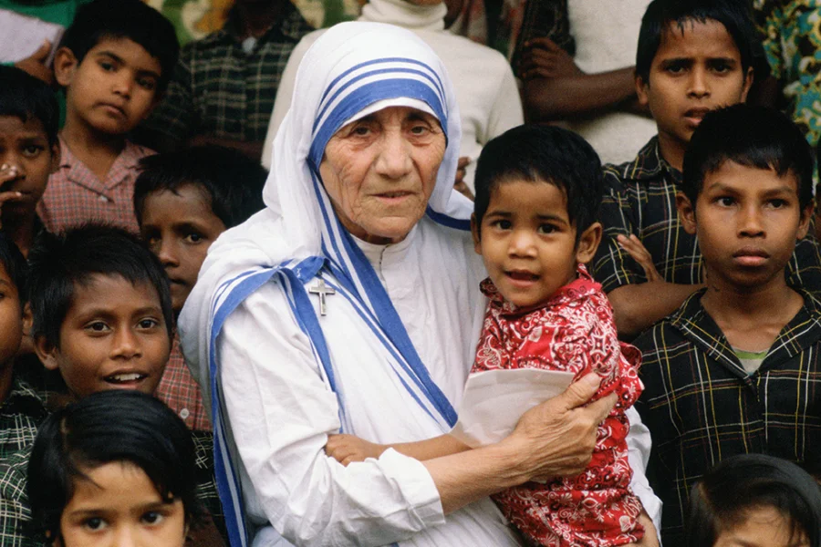 1910 - TERESA DE CALCUTA. Nace en la ciudad macedonia de Uskub (actual Skopie) la religiosa católica Teresa de Calcuta (Agnes Gonxha Bojaxhiu), símbolo de la lucha contra la pobreza y Premio Nobel de la Paz de 1979. Fue beatificada en 2003 por el papa Juan Pablo II y declarada santa por el papa Francisco en 2016.