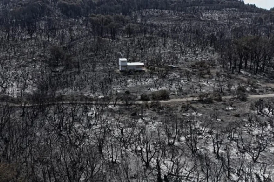 El acceso a la casa estaba cortado por Gendarmería en una tranquera bastante más abajo de la casa. Un oficial se apiadó después de varias horas de espera y dejó pasar a una sola de llas. Fue Lorena, que era la que más había llorado. Al llegar no creyó lo que vio. No quedaba ni la nada misma. Excepto la casa. Ni siquiera estaba manchada de hollín. El incendio había pasado “por arriba”, se había llevado arbustos y árboles centenarios sin tocar el hogar. El cartel que de bienvenida, inspirado en los abuelos sicilianos de Gisela, también estaba intacto: “Monte Lontano”.