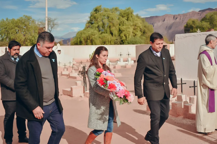 Acompañada de una fría y soleada jornada, la vicegobernadora Florencia López, lleva adelante una serie de actividades en el Departamento Vinchina que concluirá con el tradicional desfile de las instituciones departamentales por su 326 aniversario. Por la mañana, junto al intendente Gustavo Arias, el diputado Alejandro Verazay y concejales, participó de la entrega floral para los difuntos en el cementerio municipal. Luego, constató el avance de obra de nuevas viviendas y visitó otras ya entregadas.