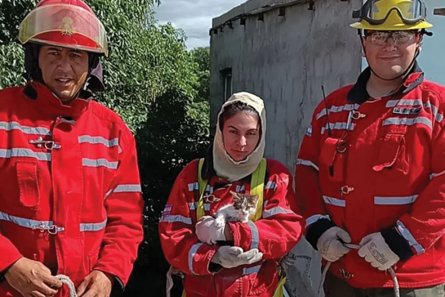 Con gran valentía y dedicación, los Bomberos Voluntarios de la Ciudad de La Rioja llevaron a cabo un emotivo rescate de un pequeño felino que había caído en un lugar inaccesible, sin posibilidades de salir por sus propios medios.