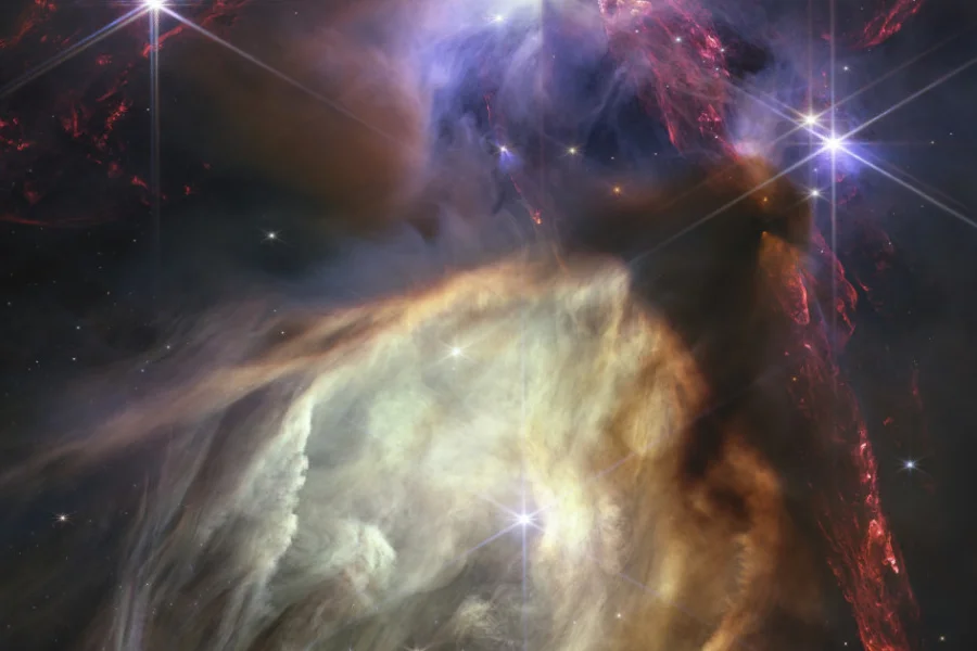 La imagen proviene de la región de formación estelar más cercana a la Tierra, a 390 años luz, situada en la nube de gas, Rho Ophiuchi.