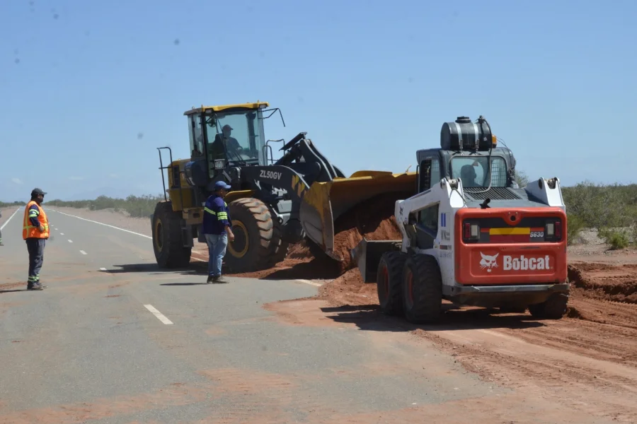En cuanto a la RN 76, en el tramo que se ubica desde el acceso al Parque Nacional Talampaya hasta la localidad de Pagacillo, se están ejecutando tareas de perfilado de banquinas para garantizar que los vehículos en caso de desvío e incluso ante una emergencia tengan un espacio seguro y en condiciones óptimas.