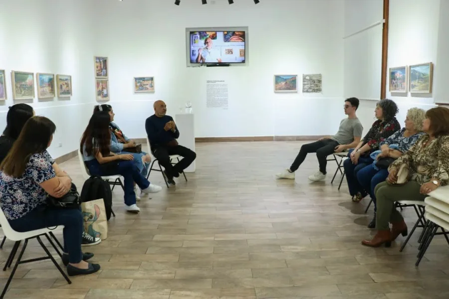 Justamente se conversó acerca de sus obras y esta muestra. En su formación académica es Maestro Nacional de dibujo, graduado de la Escuela de Bellas Artes “Manuel Belgrano” de Capital Federal.