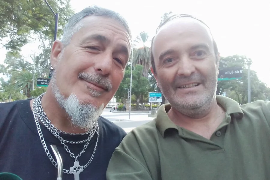 Tras arribar a La Rioja, el "Mono", voz líder de la banda, recorrió el centra de la capital y se brindó a la gente que se acercó a saludarlo